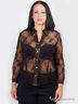 Великолепная блуза из тонкого полупрозрачного материала с изящным цветочным узором. Стояче-отложной ворот. Застежка на планку с пуговицами. Укороченные рукава с манжетами.