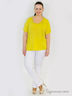 Яркая футболка из высококачественного вискозного материала. Модель свободного силуэта. Широкий округлый вырез горловины декорирован тонкими лентами. Короткие свободные рукава.