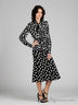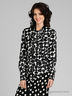 Легкая блуза из атласной ткани. Длинный рукав с широкими манжетами на пуговицах. Воротник-стойка, завязывается в бант. Планка-застежка с пластиковыми пуговичками.