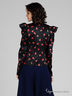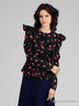 Блуза из лоснящейся шелковистой ткани. Планка-застежка с пуговицами. Декоративная сборка ткани вдоль планки и у основания рукавов. Рукава оригинального кроя.