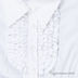 Детали: отложной воротник, застежка на пуговицы, полочка изделия украшена рюшами