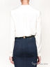 Легкая блузка свободного силуэта. Воротник-стойка. Длинные рукава на манжете. Модель выполнена из материала однотонного цвета.