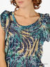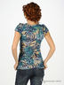 Женская блузка из легкого трикотажа. Круглая горловина. Короткие рукава. Украшена оборками.
