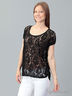 Оригинальная блузка, исполненная в интересном дизайне. Модель с короткими рукавами и округлым вырезом горловины. Дополнено изделие кружевом. Отличное решение для внесения разнообразия в Ваш стильный гардероб.