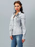 Стильная блуза с длинными рукавами и отложным воротником. Модель приталенного кроя выполнена из качественного материала привлекательной расцветки. Спереди - застежка на пуговицы. Отличный вариант на каждый день.
