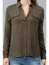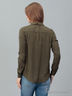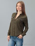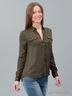 Блузка свободного покроя с легкостью впишется в гардероб романтичных, чувственных особ. Практичная расцветка позволит с легкостью создавать различные комбинации в одежде. Модель с длинными рукавами, отложным воротником и застежкой на пуговицы. На груди - небольшие накладные карманы с клапанами.