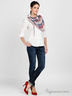 Стильная блуза из тонкой эластичной хлопковой ткани с отложным воротом и длинным рукавом. Застегивается на пуговицы, полочка декорирована простроченными складками и перфорацией. Добавит в Ваш деловой образ нотку женственности и романтизма.