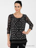 Детали: округлый вырез горловины из многорядной резинки с завязкой, рукав 3/4, принты