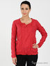 Детали: округлый вырез горловины, застежка на три пуговицы на полочке, длинный рукав, хлопковая вставка на полочке, низ изделия из многорядной резинке