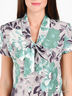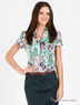 Детали: воротник стойка на завязке, короткие рукава с манжетами, оригинальный принт