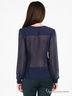 Детали: отложной воротник, длинные рукава с манжетами на пуговице, полочка оригинально драпирована, спереди застегивается на пуговицы