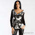 - Эффектное сочетание черного цвета с абстрактным принтом