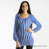 Оригинальная женская блуза в комбинированную полоску. Вертикальная полоска на полочке и спинке зрительно делает силуэт более стройным. Вертикальную полоску эффектно дополняет горизонтальная на рукавах и широкой резинке по низу блузы. Вырез горловины округлый. Фантазируйте, раскрасьте весну новыми яркими красками от итальянского бренда Bambolita!