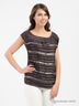 Блуза с короткими рукавами и округлым вырезом горловины. Изделие имеет свободный покрой. Спереди модель декорирована вставками из ткани разного цвета и фактуры. Легко комбинируется с любым предметом гардероба, будь то юбка, брюки или шорты. Отличный вариант на каждый день.