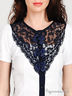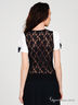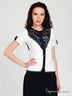Детали: круглый вырез; короткий рукав; застегивается на пуговицы; на полочке и спине кружевные вставки контрастного цвета; на планке три тканевых бантика