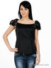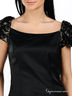 Детали: короткий рукав-фонарик контрастного цвета, декорированный кружевной тканью с бархатистым рисунком; застегивается на скрытую молнию сбоку