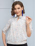 Игра по вашим правилам. И только так. Все идет по плану, если вы… в такой облегченной блузе, например. Ставка на акценты: принт Цветная крапинка, рукав с подворотом. Стойка с рюшами и вырез-капелька.