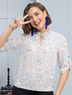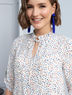 Игра по вашим правилам. И только так. Все идет по плану, если вы… в такой облегченной блузе, например. Ставка на акценты: принт Цветная крапинка, рукав с подворотом. Стойка с рюшами и вырез-капелька.