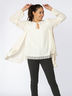 Детали: длинные рукава, круглый вырез с завязками, ассиметричный низ