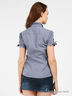 Блузка полуприлегающего силуэта с коротким рукавом. Тонкие манжеты рукавов завязываются на бант. Блузка с застежкой на пуговицы.