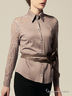 Стильная блуза с длинными рукавами и отложным воротником. Модель выполнена из качественного материала привлекательной расцветки. Отличный вариант на каждый день. Спереди изделие дополнено застежкой на пуговицы.