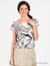 Детали: оригинальный вырез горловины, короткий двухслойный рукав "крылышко", оборки, принты