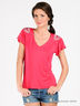 Детали: V-образный вырез горловины, короткий рукав, плечики украшены стразами