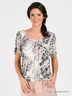 Детали: округлый вырез горловины, короткий рукав, вырез горловины и низ изделия со вставками из многорядной резинки, край рукава обработан оверлоком