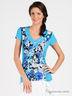 Детали: V-образный вырез горловины, короткий рукав, однотонные вставки, сборки, декоративные элементы