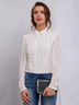 Блузка из легкой ткани, декорированная кружевом по передней части изделия.