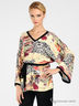 Детали: v-образный вырез горловины, цельнокроеный широкий рукав, в шлевки продет пояс