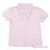 Детали: отложной воротник, короткие рукава фонарики, полочка отделана рюшами, застежка на пуговицах.
