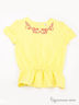 Блуза свободного силуэта для девочки. Округлый вырез горловины, короткий рукав, застежка на пуговицу сзади. Декорирована защипами и принтом на полочке. Пояс на многорядной резинке.