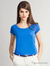 Блуза с короткими рукавами и округлым вырезом горловины. Изделие выполнено из двух тканей. Перед и рукава из трикотажа, спинка из принтованного полотна с застежкой на пуговицы. Низ спинки украшен широким кружевом, а рукава и горловина - низким.
