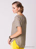 Блуза с короткими рукавами и округлым вырезом горловины. Искусственный матовый шелк средней плотности. Прямой силуэт с удлиненной спинкой и скругленным нижний срезом. Эффектным украшением спинки является молния у горловины золотистого цвета.