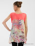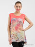 Блуза с короткими рукавами и округлым вырезом горловины. Изделие свободного покроя выполнено из принтованной ткани контрастной расцветки. Отличный вариант на каждый день.