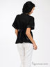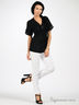 Слегка расклешенная блуза из легкого, лоснящегося материала. V-образный вырез. Цельнокроеные рукава с отворотами. Присборена спереди. В боковом шве молния-невидимка. Украшена вышивкой в тон изделия. Горловина, манжеты и поясок выполнены из атласа.