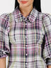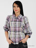 Детали: отложной воротник на небольшой стойке, застежка на пуговицах, свободный рукав с небольшой манжетой и небольшой сборкой у плеча, оригинальная расцветка.