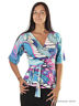 Яркая блузка с цветочным принтом. Модель с короткими рукавами и глубоким вырезом декольте. Отличный вариант на каждый день.