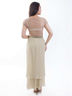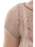 Обворожительная блузка полуприлегающего силуэта из трикотажного кружевного полотна бежевого цвета. Горловина изделия и втачные рукава обработаны внутренней атласной бейкой.