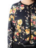 Жакет женский прямого силуэта, выполненный из трикотажа с модным принтом. Горловина переда — округлая, застежка центральная на петли-пуговицы. Горловина, борта, низ изделия и рукавов обработан широкой окантовкой. Рукав прямой до запястья.