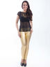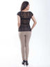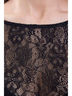 Обворожительная блузка полуприлегающего силуэта из трикотажного кружевного полотна черного цвета. Горловина изделия и втачные рукава обработаны внутренней атласной бейкой.