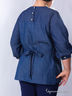 Романтичная туника свободного силуэта из текстильного джинсового полотна. Перед изделия украшен декоративным элементом. По низу втачных рукавов манжеты с застежкой на пуговицу. Спинка изделия дополнена разрезом с застежкой на пуговицы. Линия талии подчерк