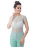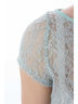 Обворожительная блузка полуприлегающего силуэта из трикотажного кружевного полотна зеленого цвета. Горловина изделия и втачные рукава обработаны внутренней атласной бейкой.