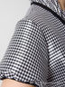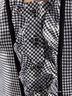 Детали: воротник стойка, короткие рукава, застежка на пуговицы, полочка изделия декорирована оборками