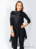 Детали: укороченные рукава, талия подчеркнута шнурком, изделие украшено декоративным цветком