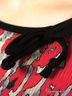 Детали: округлый вырез горловины украшен бантиком, короткий рукав, принты, изделие посажено на манжету