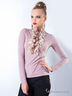 Повседневная блуза с длинными рукавами и воротником стойкой. Приталенный силуэт. Изделие выполнено из приятного на ощупь материала. Полочка оригинально украшена многослойным жабо. Яркий и массивный декоративный элемент преображает блузу, делая ее изысканнее и оригинальнее!