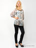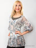 Детали: округлый вырез горловины, широкие и укороченные рукава, полочка изделия украшена декоративными элементами