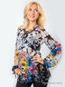 Детали: V-образный вырез с воланом, длинные рукава на завязках, изделие украшено ярким принтом